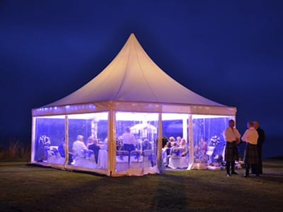 Our 6M X 6M White Pagoda is the highest quality available on the market. Our structures are completely waterproof and manufactured from a fabric that is flame-resistant. Temporary and semi-permanent fastenings for slabs, decking, artificial grass, concrete, and asphalt are available for an additional cost. Our connecting kits allow for the connection of many units. In addition to the traditional structure, we can equip any of our gazebos with lights, heating, power and flooring.